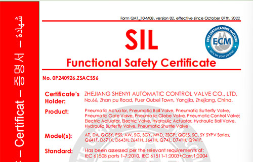 浙江申儀自控閥門有限公司是專業(yè)生產(chǎn)各類閥門執(zhí)行器和氣動閥門及其他成套自控閥門和附件為一體的技術(shù)型企業(yè)。公司已通過了ISO9001:2008認(rèn)證、TS閥門壓力管道認(rèn)證、歐盟CE認(rèn)證、安全完整性等級SIL3證書,防爆認(rèn)證等......